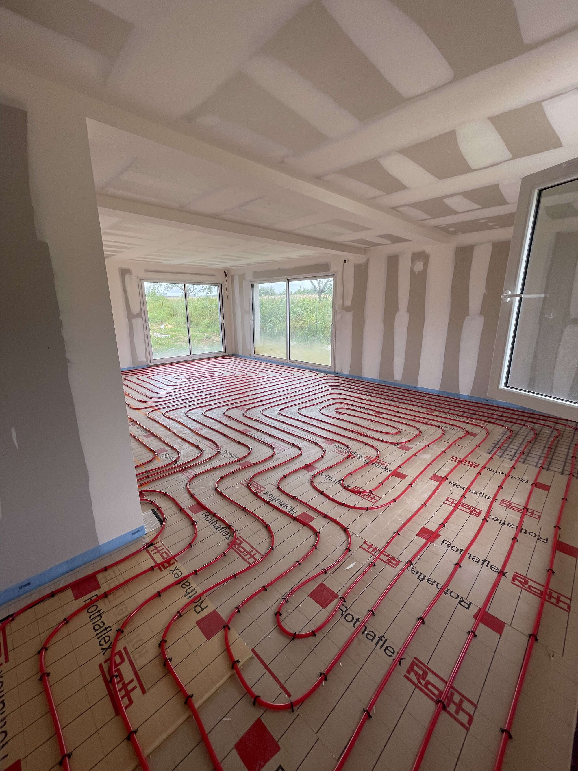 Nous assurons les prestations suivantes : plomberie générale, plancher chauffant, installation de pompe à chaleur, climatisation.